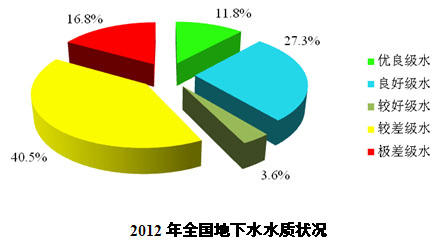 依據(jù)中華人民共和環(huán)境保護部《2012年中環(huán)境狀況公報》,2012年中地下水環(huán)境質(zhì)量為: